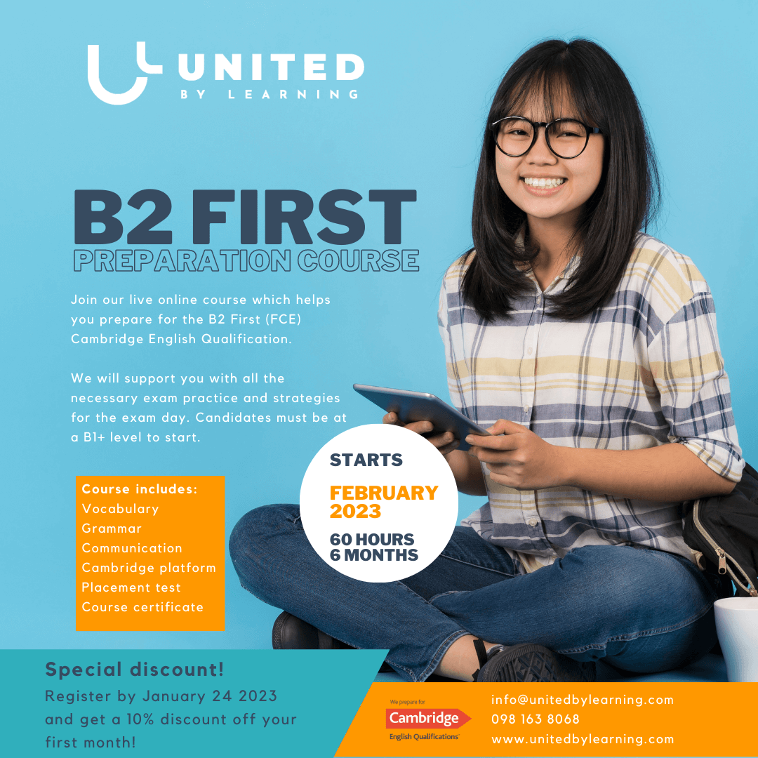 We are opening our new B2 First (FCE) group in February which will help you prepare to take this Cambridge English Qualification recognised and accepted the world-over.